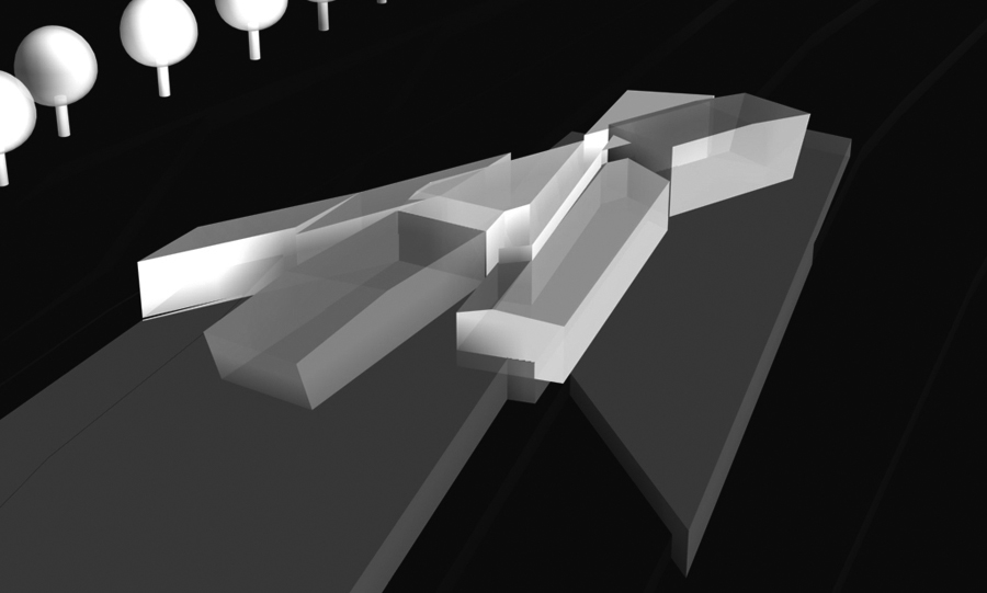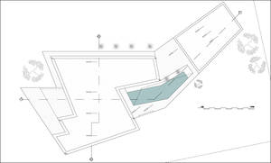 The wide platform roof, that could be as well a green roof, links the residential building with the secondary building to one large shape.