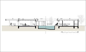 On one side through the outdoor pool area and on the other side through a spacious terrace. Both sides provide a large scale glazed façade.