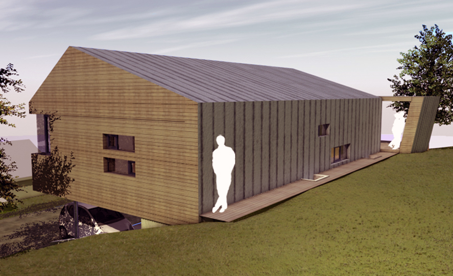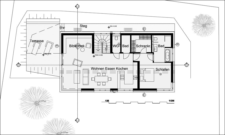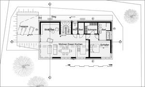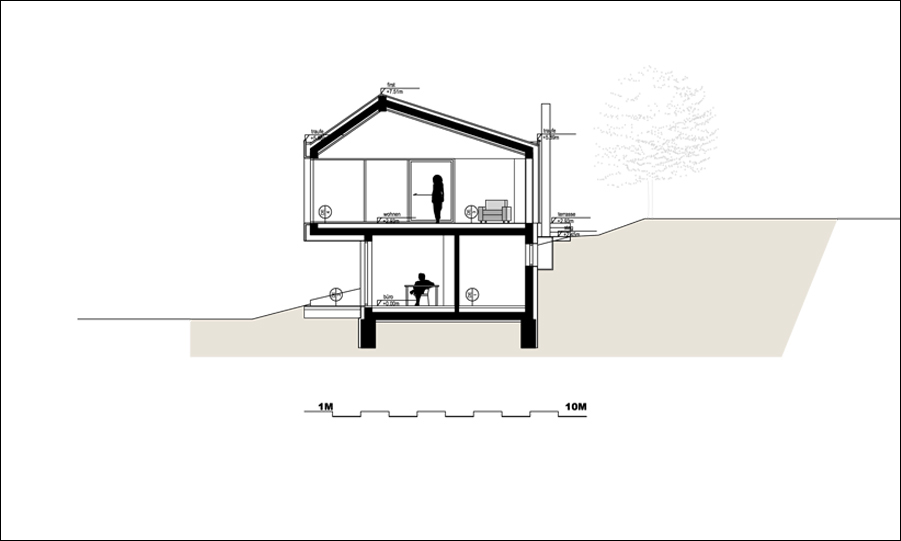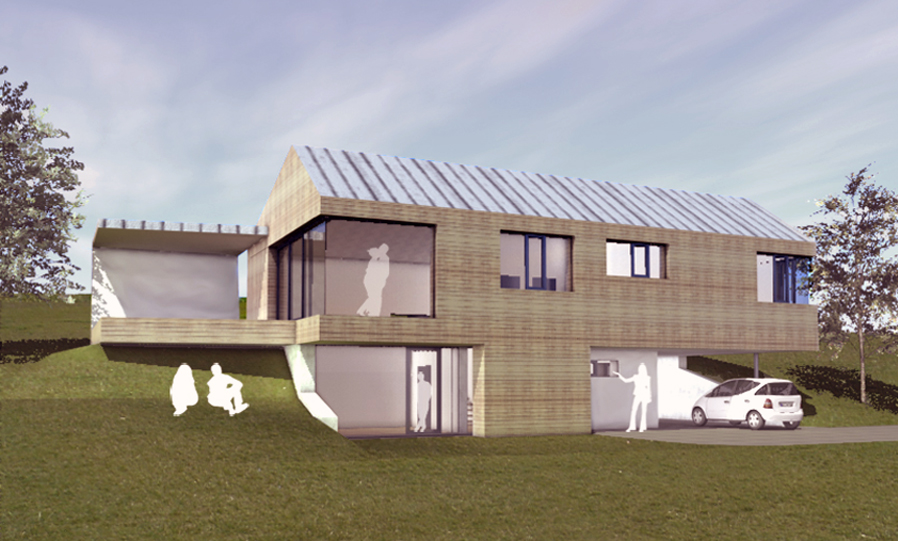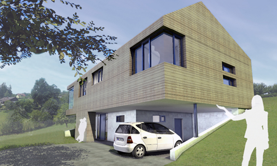 Das Haus erschließt sich vom Erdgeschoss aus wobei alle Wohn – und Aufenthaltsbereiche im Obergeschoss anlegt wurden.