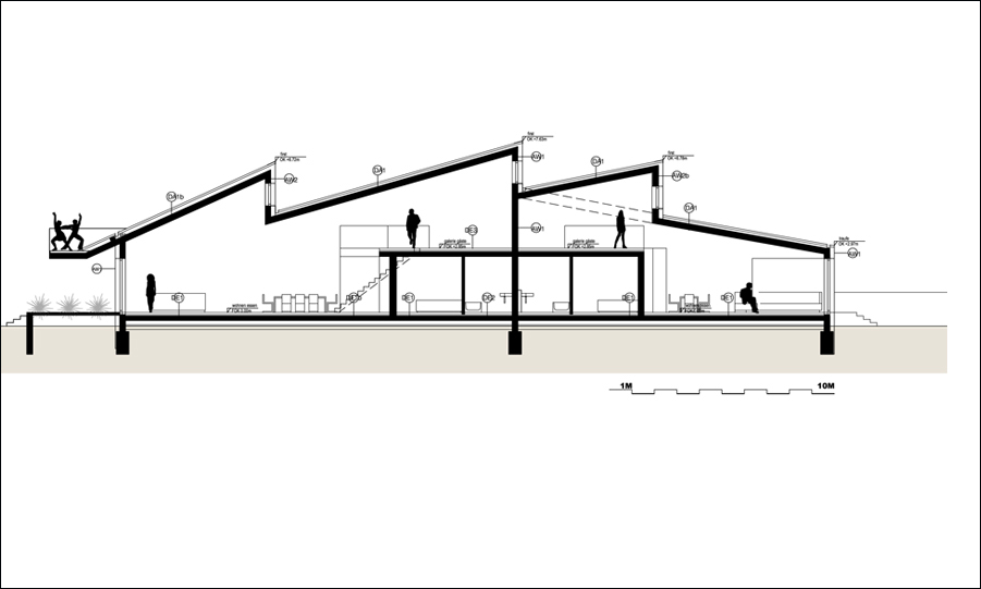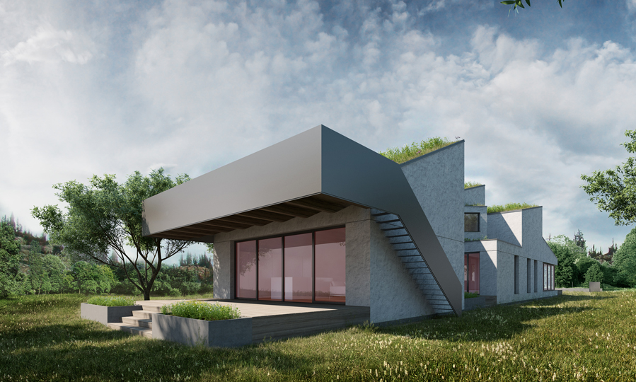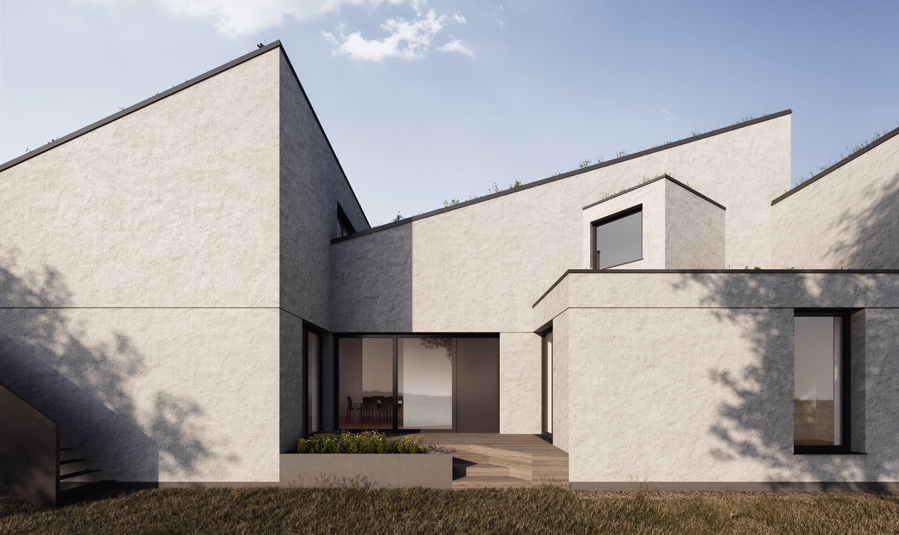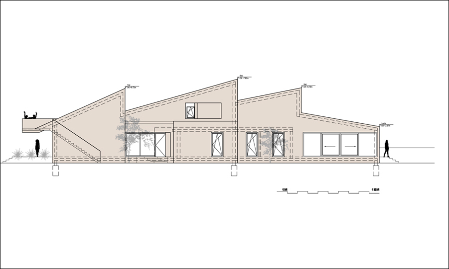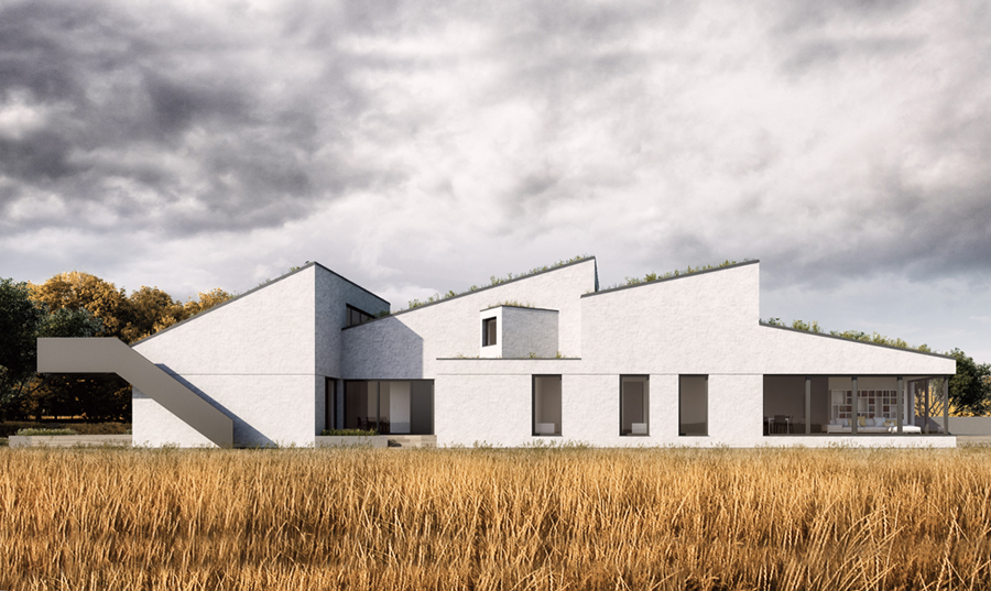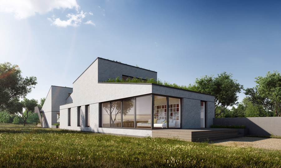 Ursprünglich für eine Künstlerfamilie entworfen, richtet dieses Haus seinen Hauptaugenmerk auf die offene Wohnlandschaft mit eingezogener Galerie Ebene.