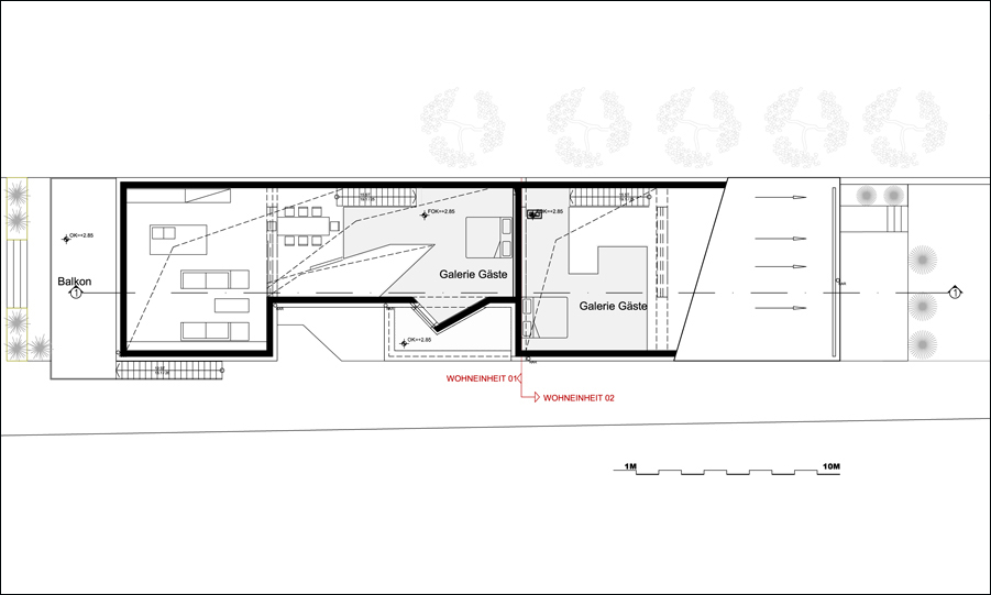 Wohneinheit 02 betrifft man an der Frontseite des Gebäudes.