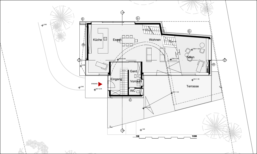 Es werden zwei separate Eingänge angeboten, dadurch ist Geschoss 00 (Wellness Bereich) offen für verschiedene Nutzungsarten.