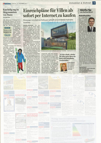Sie bietet Einreichungspläne nicht gebauter Häuser feil. Denn es gibt immer wieder Entwürfe die beauftragt, aber aus vielerlei Gründen nicht umgesetzt werden. „Die Ideen sind zu wertvoll um in den Schubladen zu verschwinden“, sagt Schacherer.